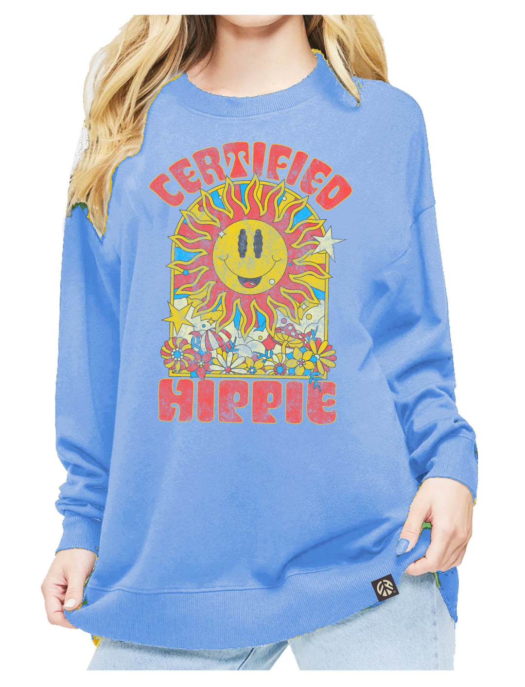 CH Trippy Sun Womens OVERSIZE FLEECE CREW - Washed Peri Blue
